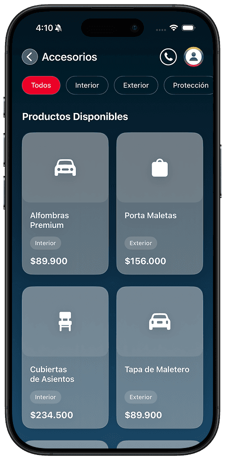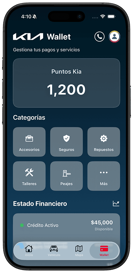 Earn rewards, from every drive. With Kia Points, users can enjoy discounts on parts, accessories, and maintenance — all in one simple, organized space. Need a replacement or repair? Order it right from the app with complete trust and security. Through our partners, users can also explore car insurance options effortlessly, with every detail clearly presented.